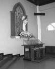 Altar lebih tinggi dari panti umat, selain untuk memudahkan umat melihat dan mengikuti jalannya upacara, juga mengingatkan umat kepada bukit Kalvari. Altar sebagai meja perjamuan (perjamuan pada hakekatnya merupakan perayaan kenangan, puji syukur dan harapan), juga mengingatkan kepada umat tentang perjamuan terakhir Yesus dengan murid-muridNya. Di atasnya terdapat buku liturgi, roti dan anggur (bila diadakan ekaristi), salib, lilin, kadang-kadang karangan bunga. Salib mengingatkan umat pada Yesus Kristus yang telah mengorbankan diriNya. Lilin lebih merupakan simbol daripada alat penerangan, yaitu simbol Kristus sebagai terang dunia yang hadir di antara umatNya, karya ilahi di dunia ini. Sedangkan mimbar adalah tempat membacakan bacaan kitab suci (perjanjian lama, surat rasul atau epistola dan injil), berkotbah, pembacaan mazmur, pembacaan doa umat dan pengumuman. Selain itu, terdapat lampu Tuhan yang merupakan lampu suci berwarna merah yang terus menyala dekat tabernakel sebagai tanda bahwa didalamnya tersimpan sakramen Maha Kudus, dan sebutan lampu Tuhan melambangkan Tuhan hadir dalam sakramen tersebut.