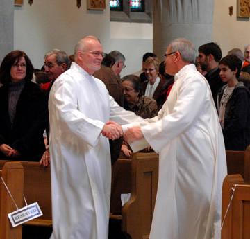 Berjabat tangan atau bersalaman mengungkapkan wujud dari Kasih dan Persaudaraan. Bersalaman dilakukan oleh umat ketika kita saling memberikan Salam Damai. Ungkapan Salam Damai berbeda-beda menurut adat istiadat setempat. ada yang mengungkapkannya berpelukan atau mencium pipi. Dan juga dilakukan oleh Imam dengan para pembantunya (prodiakon atau mesdinar)