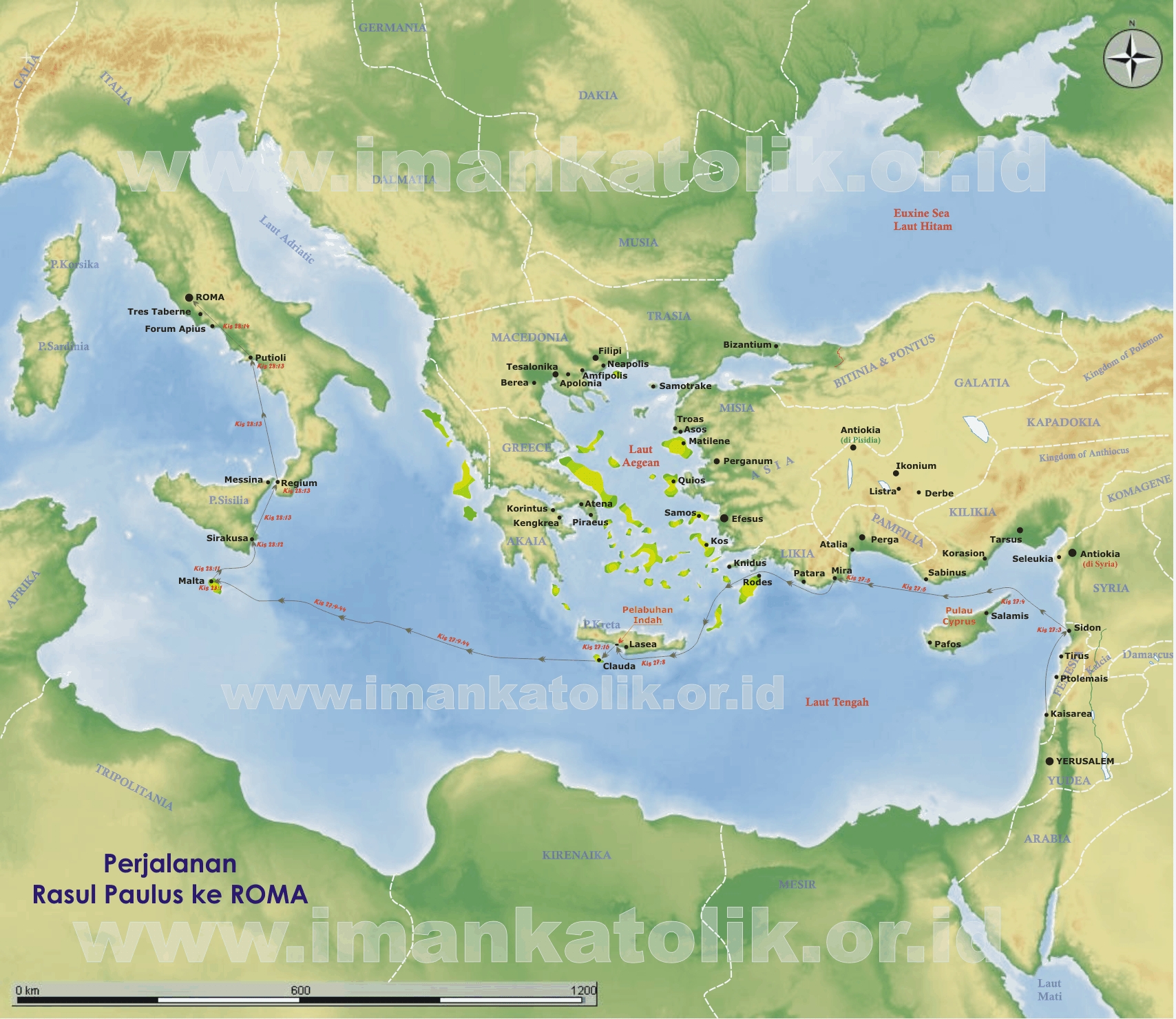 Peta Perjalanan Rasul Paulus ke Roma [Gambar 1] [Gambar 2]