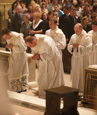 oleh Imam dan para pembantunya (prodiakon, misdinar) didepan altar ketekika memulai dan sesaat sebelum meninggalkan gereja (setelah berakhirnya perayaan Ekaristi)